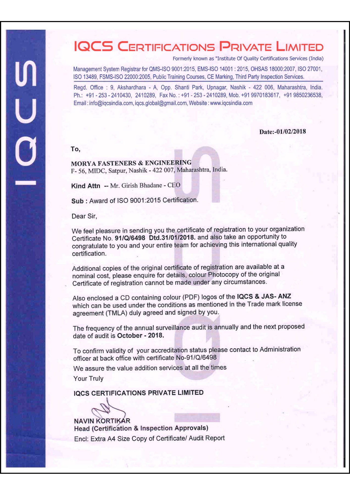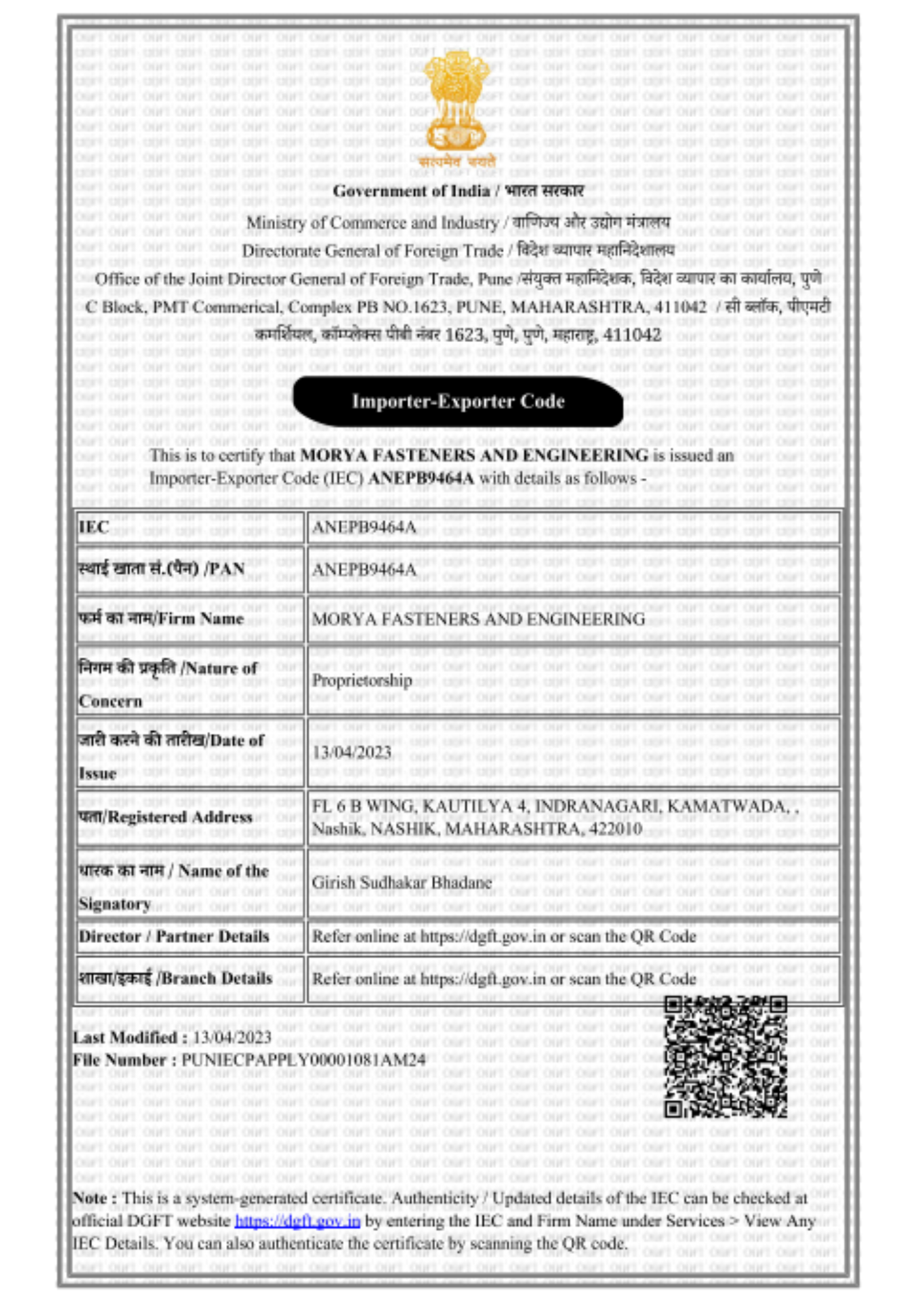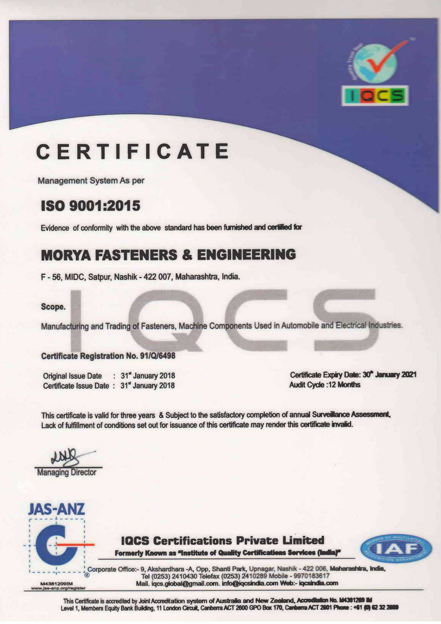 The continued reputation of Morya Engineering(Nashik) as a global leader combined with our focus on continuous improvement has put us on the path to becoming the best-in-class global fastener provider in the many apparel and industrial markets we do business in. Our depth and breadth of product line will continue to expand in response to market needs and to new growth markets we identify.