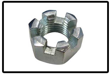 Slotted nuts are just that—hex nuts with six large slots 60° apart in the top center of each flat (side). Their strength is said to be 80% of "full thickness nuts of the same size, style and grade."